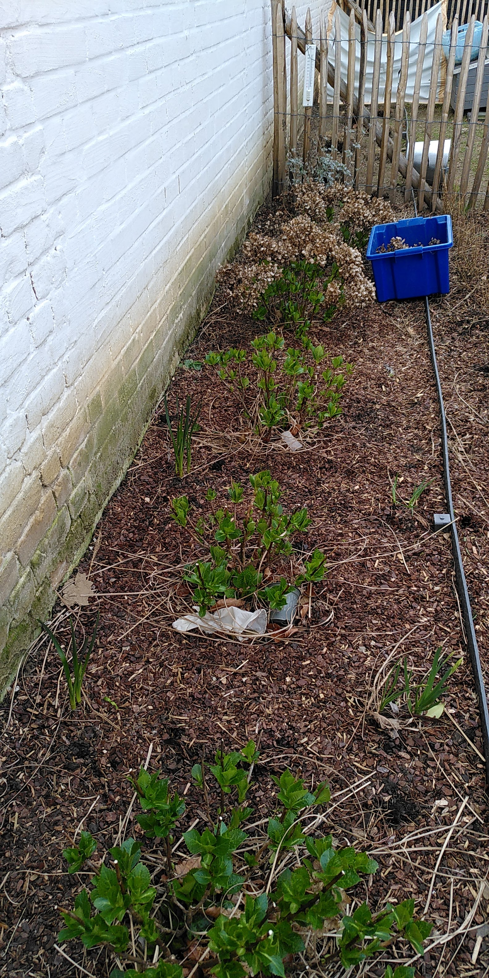 Tussenin deed ik al wat snoeiwerk in de tuin. Lampenpoetsersgras kortwieken en hortensia snoeien. Na dat laatste zag je meteen al het frisse groen tevoorschijn komen. Ik liet speciaal wat nestmateriaal voor de vogels liggen in het perk. Pluim in mijn gat om zo actief te zijn die dag.
