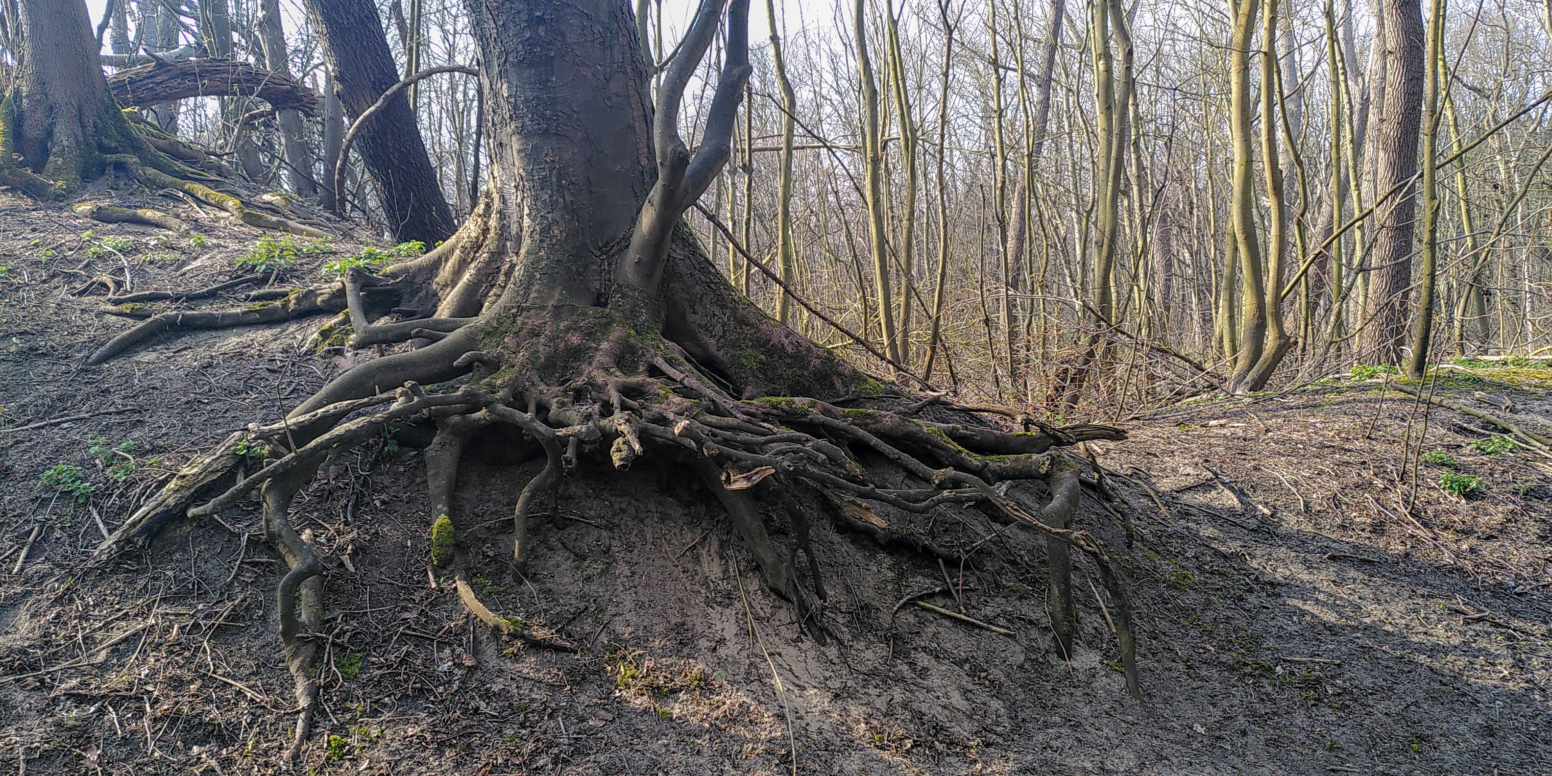 Eén boom toonde nog sporen van voorbije herfst-winter. Gelukkig is voorbij hier een belangrijk woord.