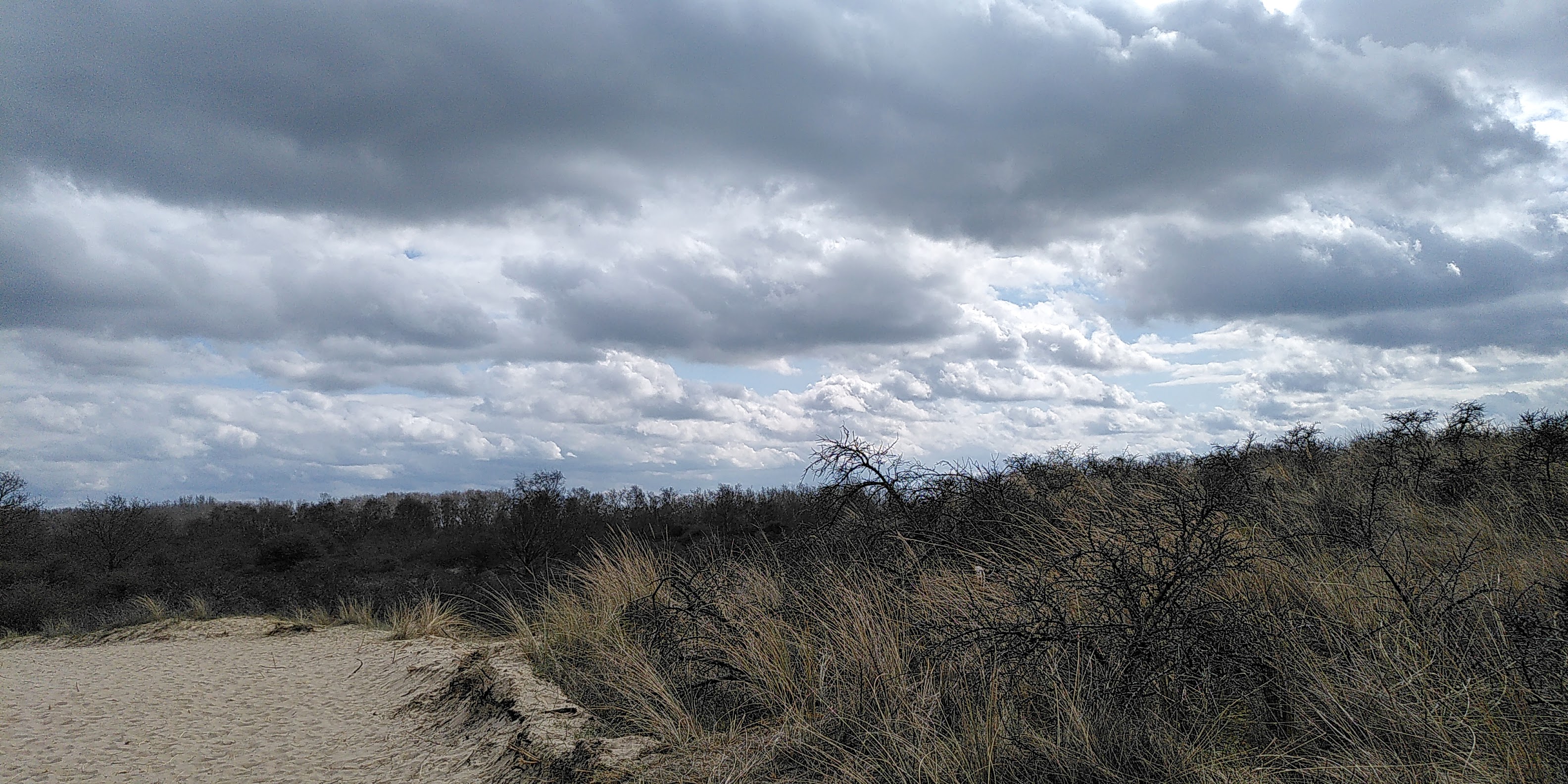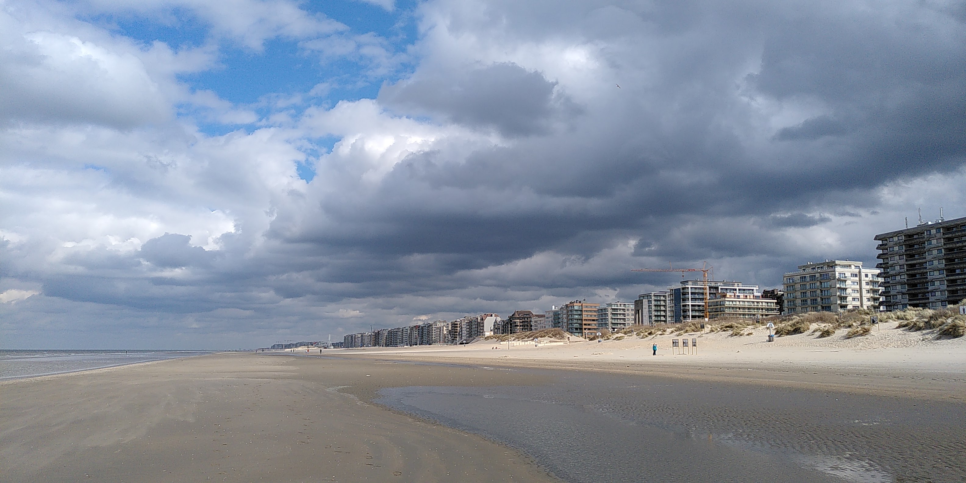 Kindjes 🙂 thuis, dat betekent nog altijd “wat gaan we doen vandaag”. Naar Gent gaan was een optie, maar ik had daar niet zoveel zin in. Dochter zag naar zee gaan ook wel zitten, dus reed ik nog eens naar De Panne. Zelfde wandeling van woensdag, aangevuld met de knooppunten die we gemist hadden. Het zou regenen na de middag, dus we vertrokken al rond 10u en namen boterhammetjes, koffie en limonade mee. Uiteindelijk hielden we het heel de tijd droog, maar de wolken waren wel indrukwekkend.