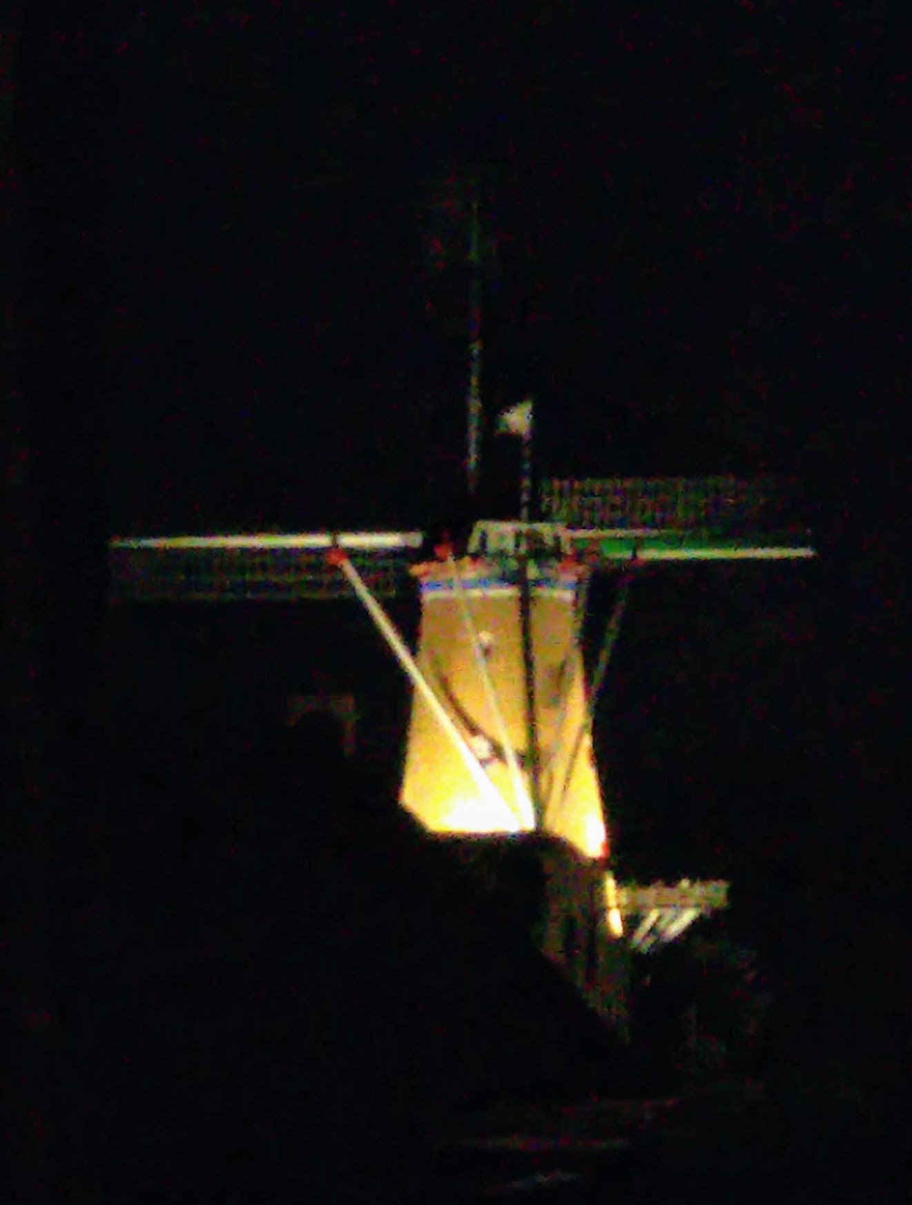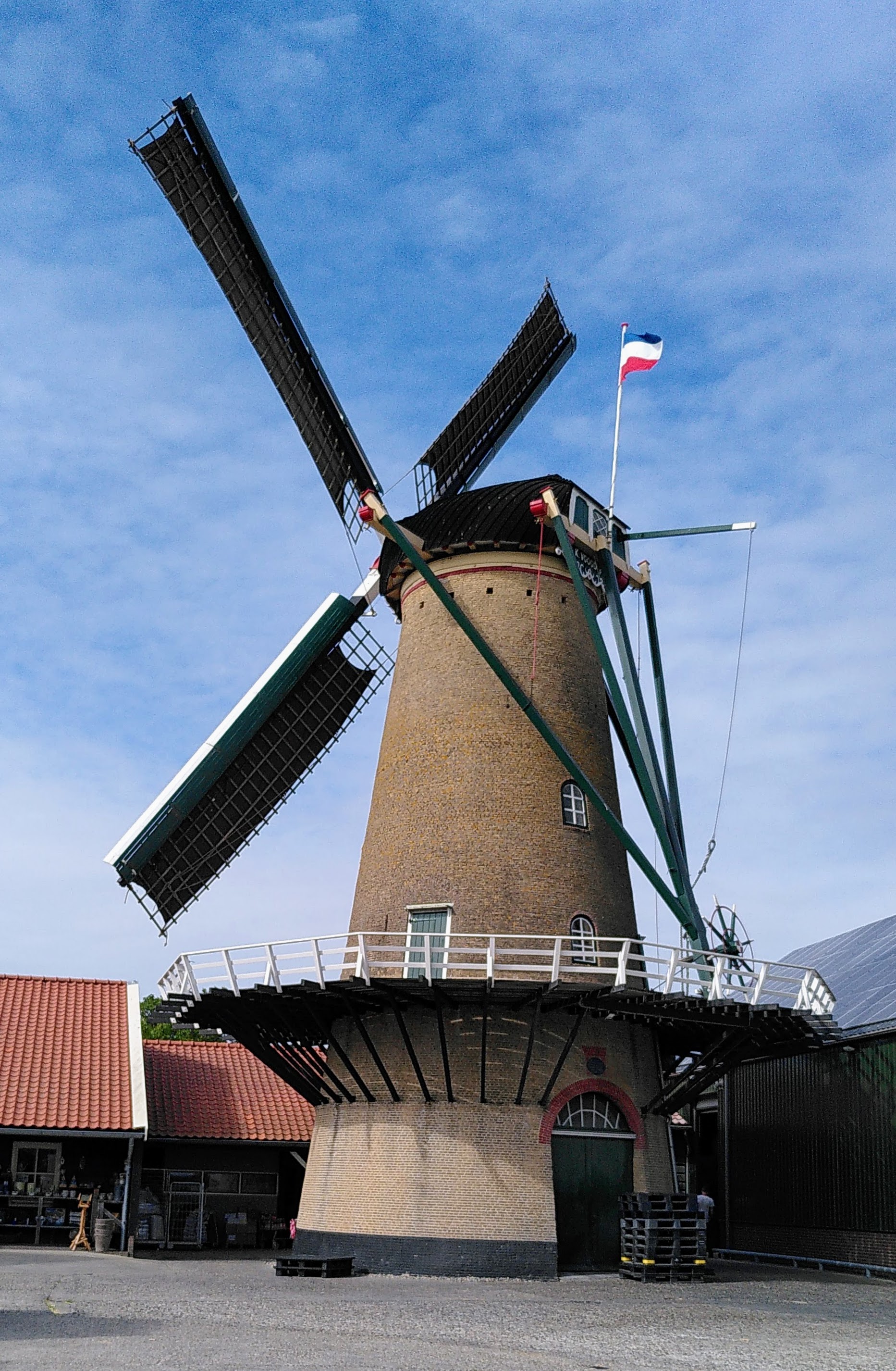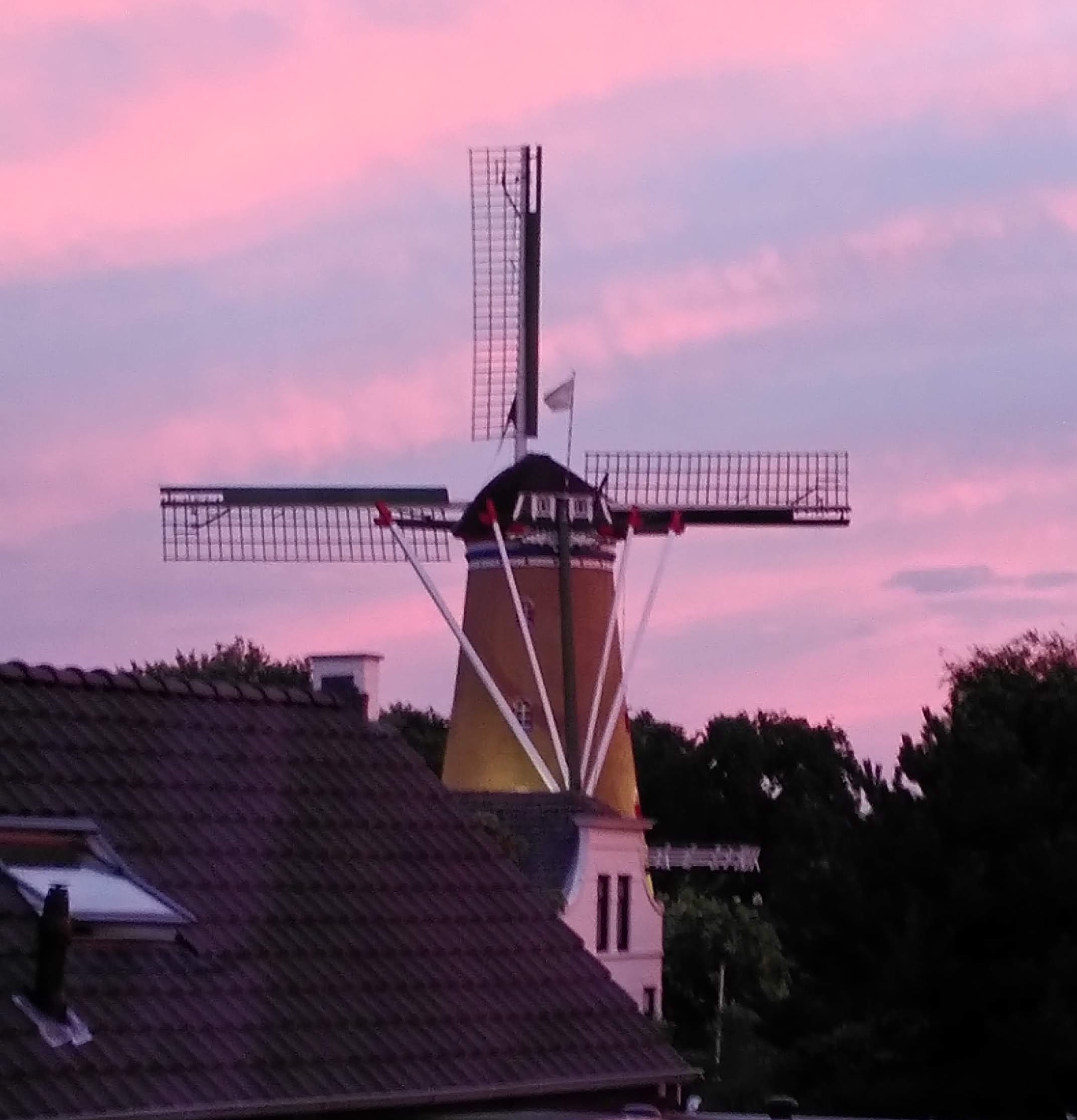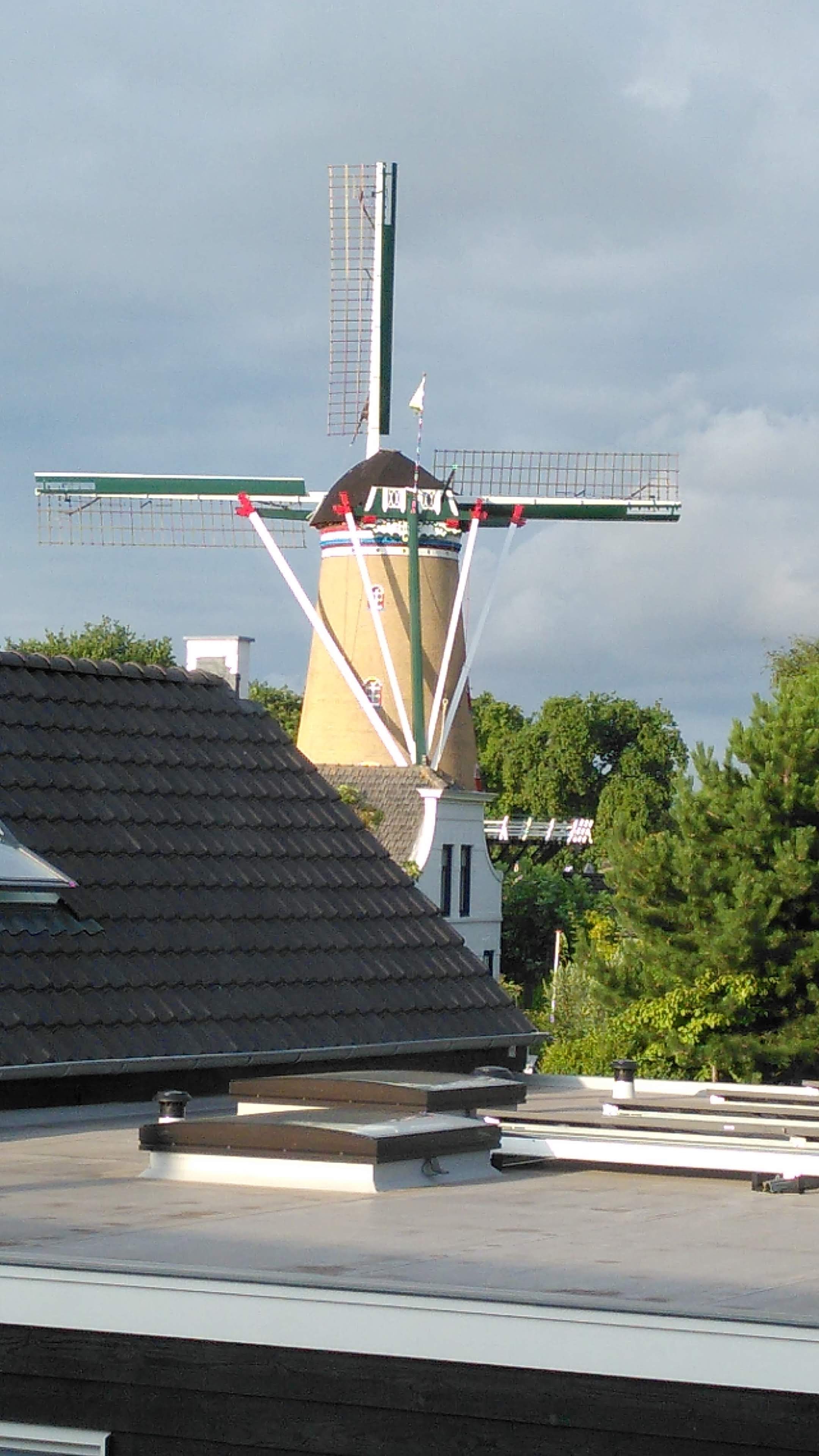 Het was dus even sukkelen met de route toen ik van de boot kwam, maar eens op weg kwam er een zaligheid op me af. Dat ik water zou zien de komende dagen was duidelijk, dat er wind zou zijn ook. Dat Nederland duidelijk veel verder staat in kustbeveiliging dan Vlaanderen (bij ons denken ze alles op te lossen met de stranden op te spuiten en de duinen met helmgras te laten begroeien, tssss) tonen heel de Deltawerken. Neeltje Jans en co, precies door de zee rijden, zalig op een aparte fiets- en dienstverkeer baan. Tussendoor kleine dorpen doorrijden, sommige met ringweg en al, niet te vergelijken met de R8 in Kortrijk en dan arriveren in Ouddorp waar de zin tot fietsen nog niet over was. Ik wou ook nog de vuurtoren van dichtbij gaan zien die ik al van ver kon zien staan. Ik struinde ook nog door het dorp waar heel vreemd alle winkels dagelijks om 17u sluiten zelfs in het hoogseizoen. Van de twee molens in het dorp kon ik één door mijn slaapkamerraam zien. Ik nam er dus een paar foto’s van.