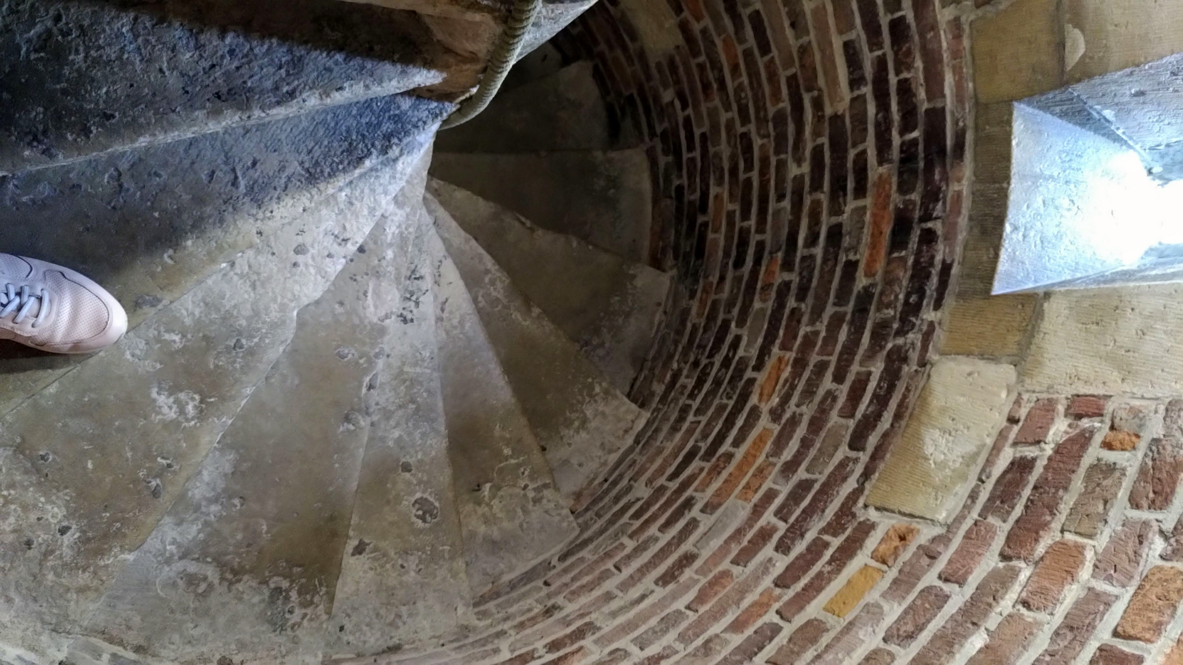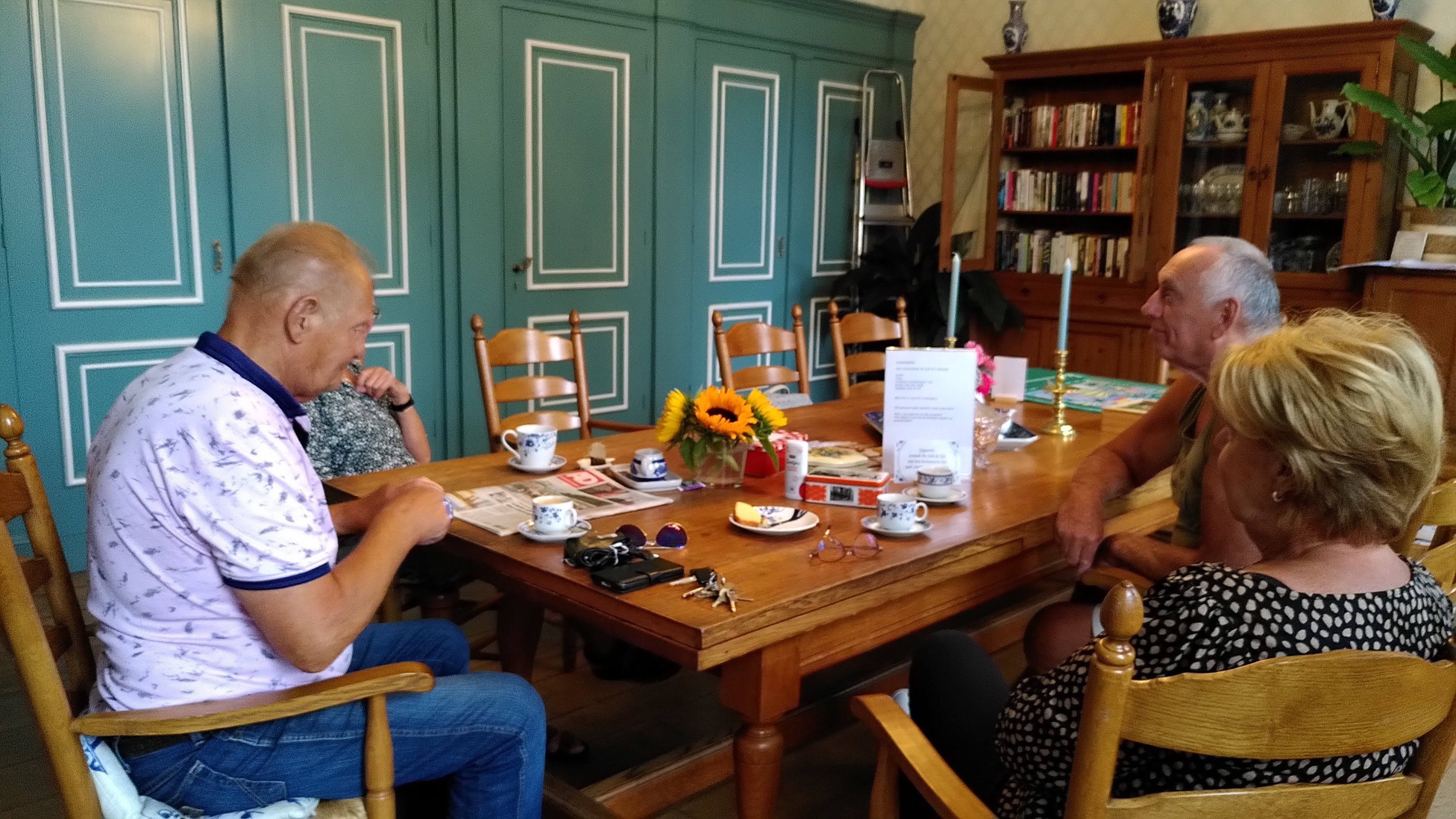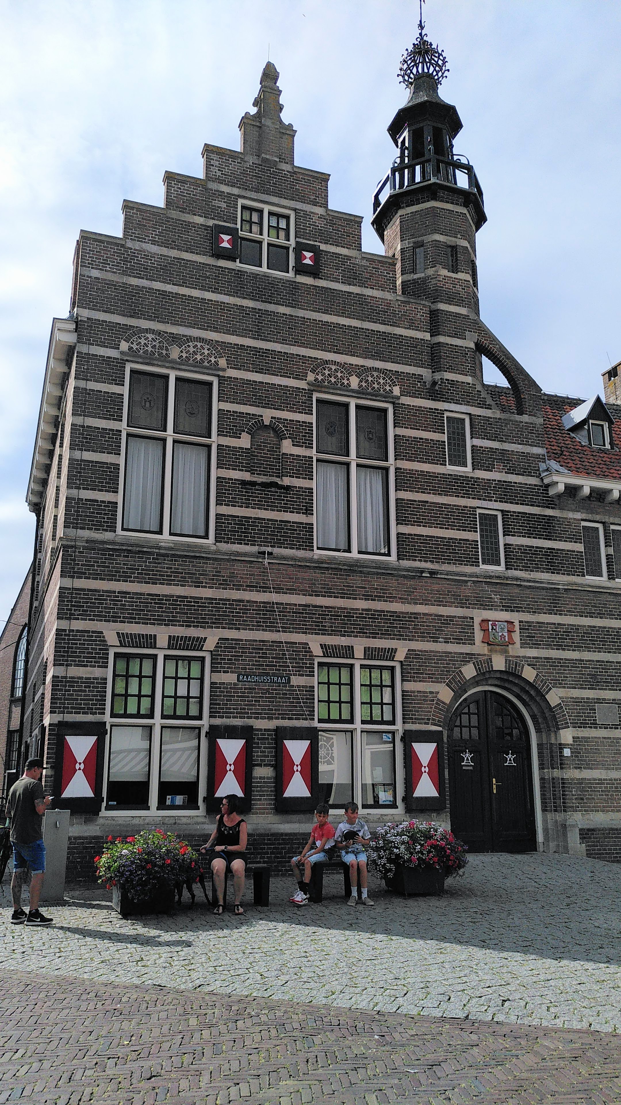 Op Google Maps had ik gezien dat Brielle een stadje was met stervormige vesting, daar wou ik dus wel eens passeren. De indrukwekkende kerktoren zou mij misschien zicht geven op die vestingen, dus ging ik richting kerk. Aan de zijkant mijn fiets parkerend keek ik nieuwsgierig door een zijraam naar wat ik dacht dat een tearoom was. Een dame kwam naar buiten en vroeg me binnen in ‘De Huiskamer’ een plek waar je voor een halve euro een kop koffie of thee krijgt en daarbovenop een babbel. Ik kreeg als eerste vraag of mijn man daarboven was (de kerktoren), ik repliceerde met nee maar wel anders. Men informeerde naar mijn reisweg, waar ik overnachtte, en één van de heren bood me spontaan een bed aan in zijn huisje aan zee. Niks me-too, gewoon heel grappig! Ik vraag me af wat hij had gezegd mocht ik er op in gegaan zijn :-). Ik liet er €2 achter, ik kreeg immers ook een plakje vieze hotelcake bij de koffie en het gezelschap wou ook op mijn fietstrolley letten (de fietszak met de meest waardevolle dingen in waaronder de reserve fietsbatterij van Bruno nam ik standaard van de fiets als ik ergens binnen ging), want ik ging nog naar boven (de toren), maar ik deed dat wel alleen.