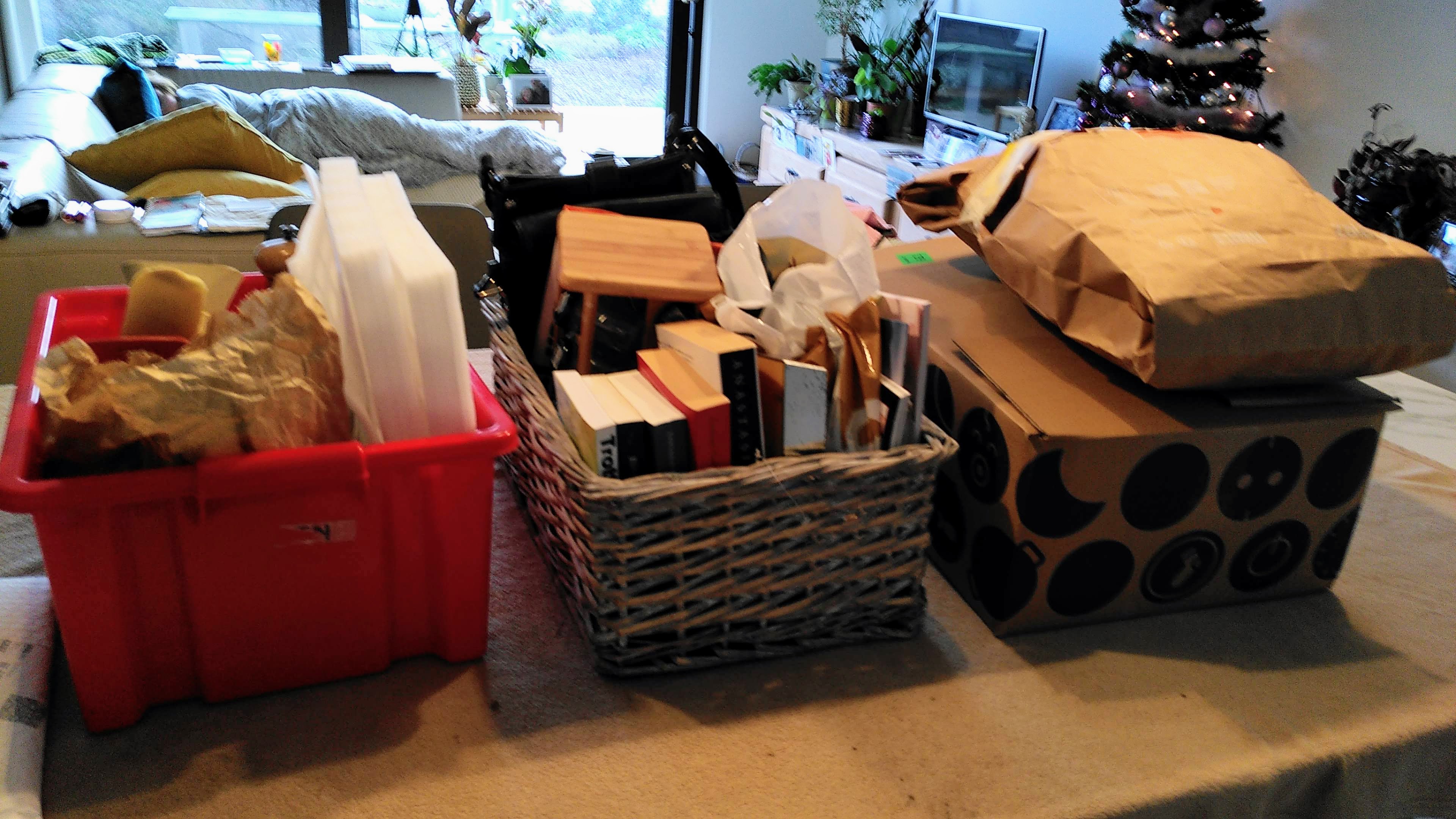 Dinsdag: Niet zo van de ‘zittend gat’ zijn maakte dat ik toch maar iets nuttigs deed. De bergruimte onder de trap raakte niet opgeruimd voor het einde van het jaar, dus begon ik er toen maar aan. Dat leverde veel papier en karton op ter recyclage, een bak voor het containerpark en een bak voor de kringwinkel. Die laatste bracht ik maar meteen weg en nu ik dan toch de auto uithaalde, deed ik ook maar ineens wat grotere boodschappen.