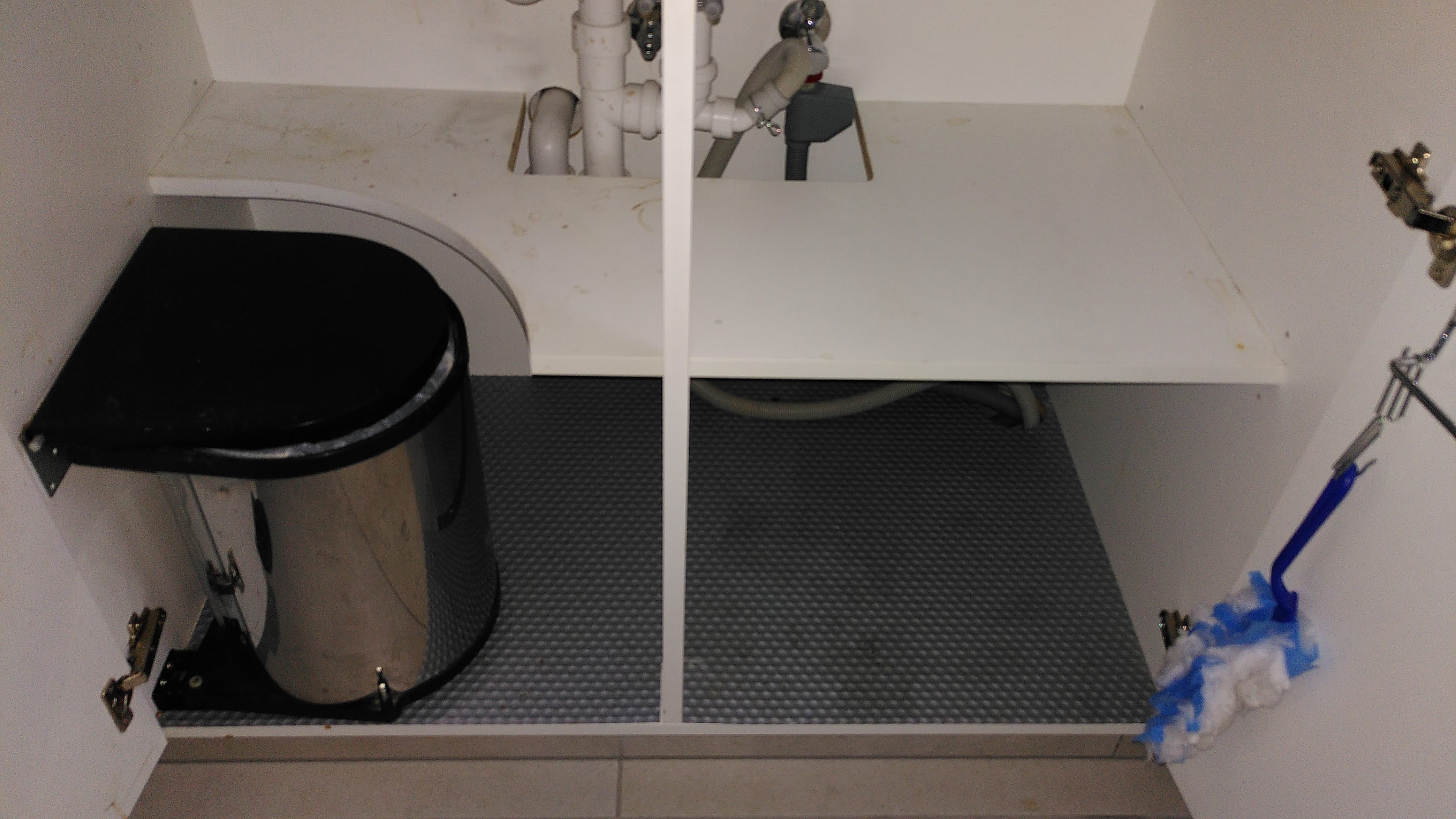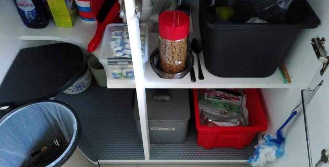 Donderdag: begon met nog eens een karweitje aanpakken. De kasten onder de gootsteen konden ook een opruim/poetsbeurt gebruiken. Zo gezegd, zo gedaan. Weer een doorn uit het oog!